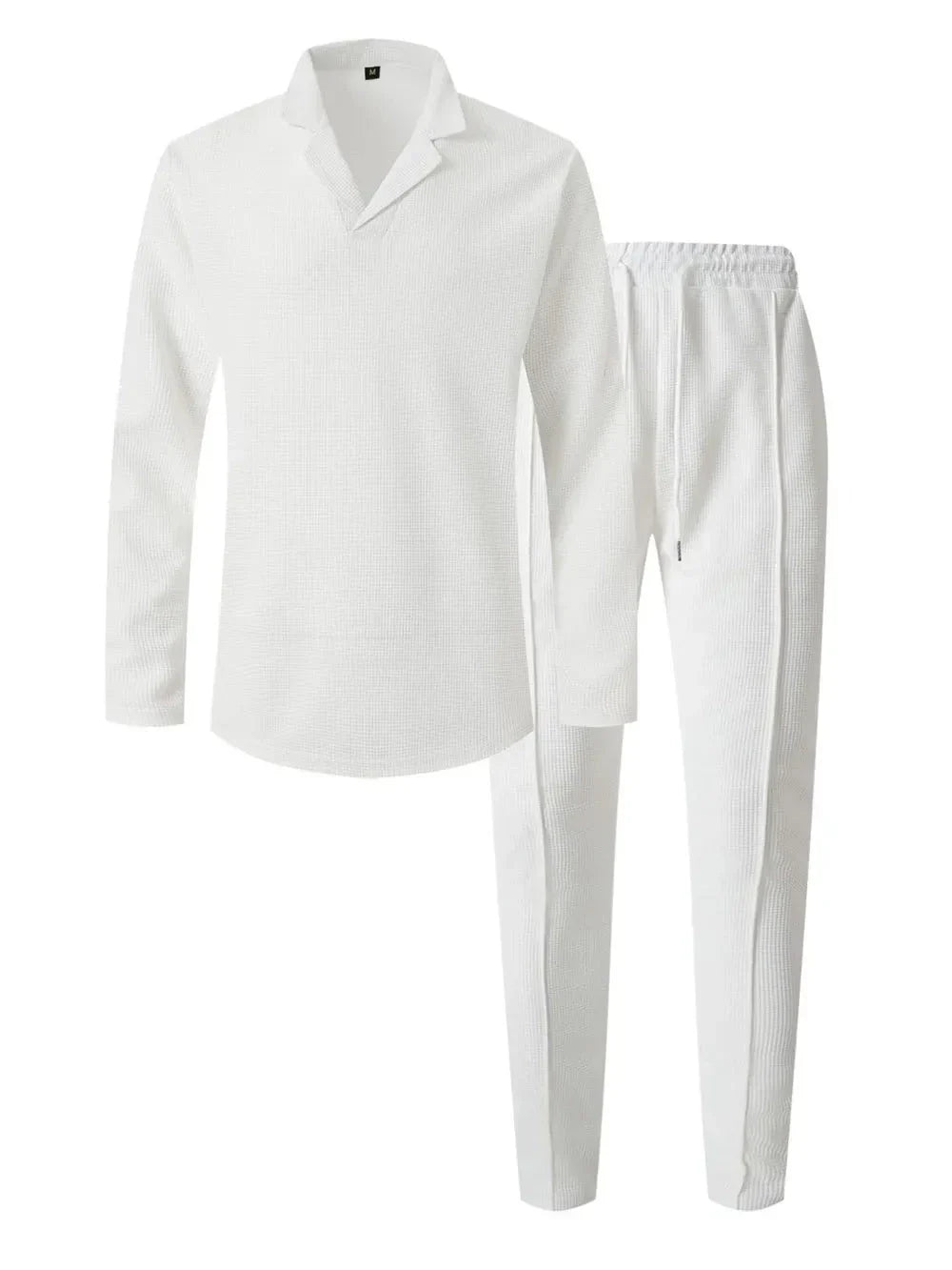 Men's Full Size Waffle-Knit Long Sleeve Top and Pants Set Plus Size